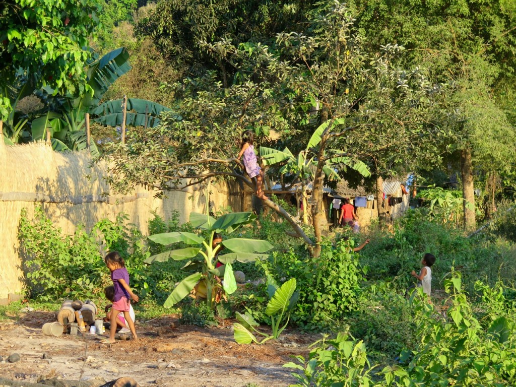 Au loin, on peut voir un incendie derrière la colline. En fait, ce sont des incendies provoqués ; les habitants les déclenchent afin de gagner des terres de culture pour le riz.