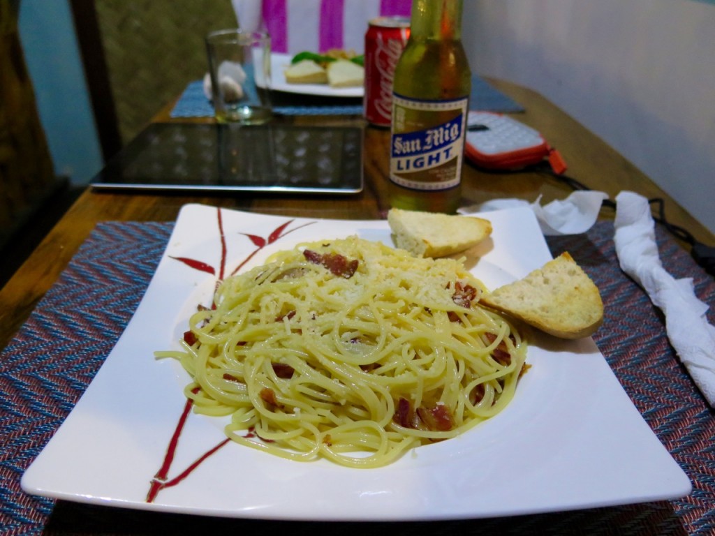 Du coup, en grand amateur de pâtes, je peux vous assurer qu’elles sont excellentes ! À la carte, il y a également des vins italiens et, bien sûr, la bière locale, j’ai nommé la San Miguel (50 à 60 php) !