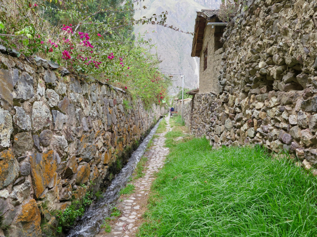 Avant de partir, nous faisons un dernier tour dans le village d’Ollantaytambo, lequel est très bien conservé. Ses maisons en pierre, ses canaux, l’eau courante dans chaque ruelle, l’agencement des rues, bref, c’est un modèle de construction inca.