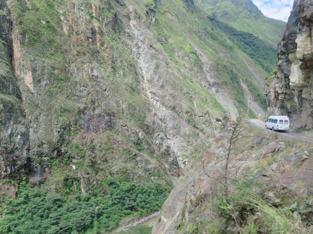 Le chauffeur du bus pilote de F1 roule comme un fada ; il faut avoir le cœur bien accroché, d’autant plus que les routes sont extrêmement étroites et bourrées de nids-de-poule. Et, bien souvent, les roues du bus passent à quelques centimètres du ravin… Néanmoins, nous tenons bon et, finalement, nous ne serons pas malades.