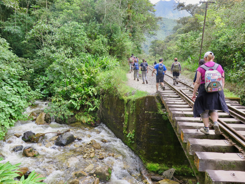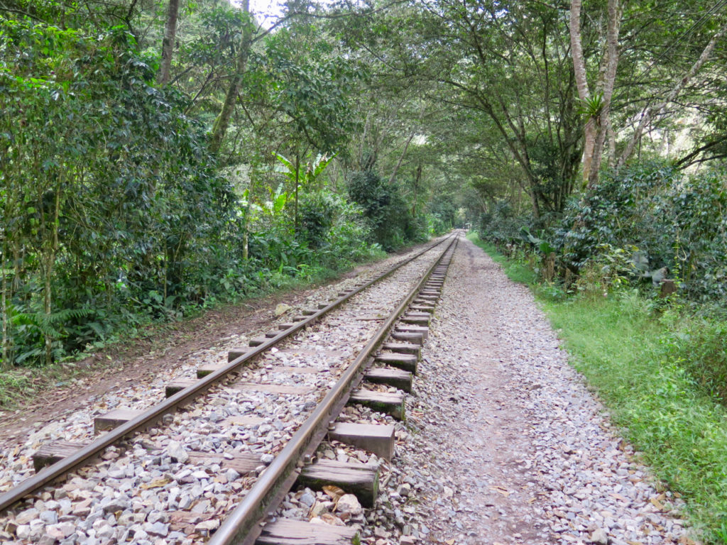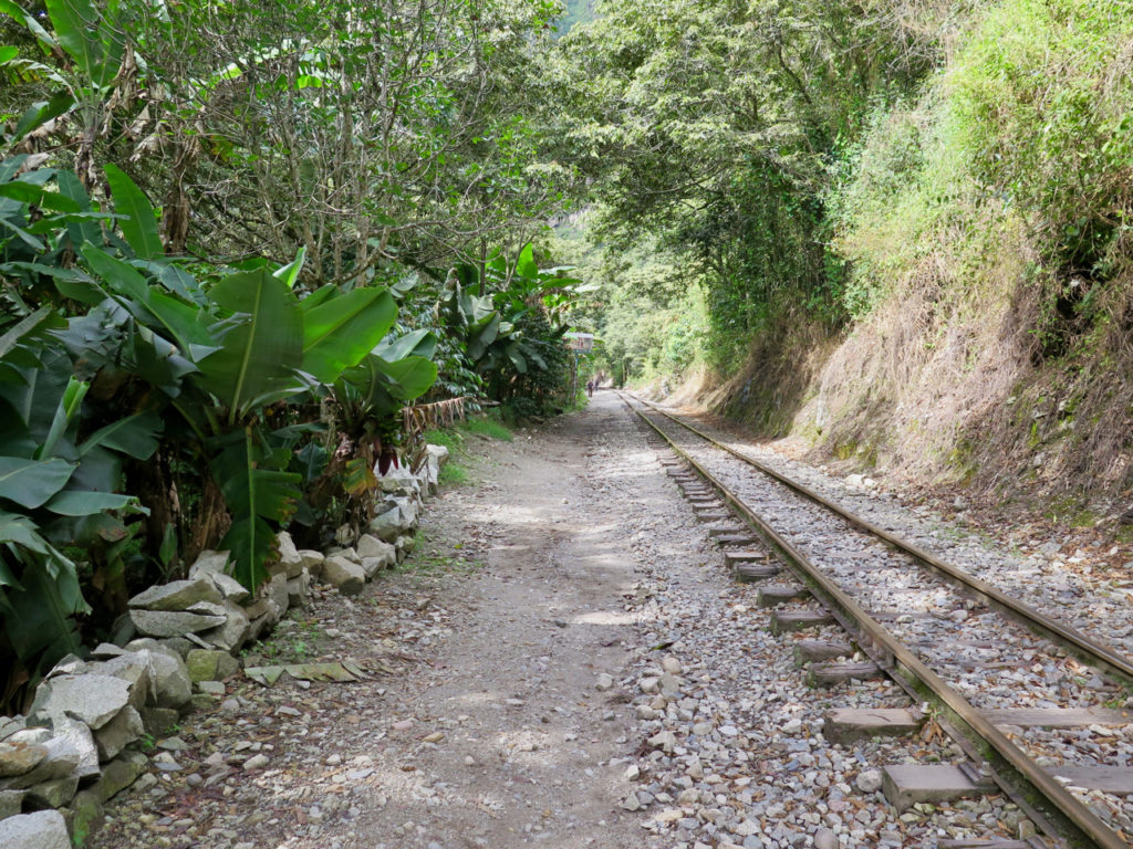 Il nous reste désormais 12 km de marche pour atteindre Aguas Calientes, le tout en suivant les rails du chemin de fer et le Rio Urubamba. La plupart des voyageurs mettent 2 à 3 h pour arriver à destination.