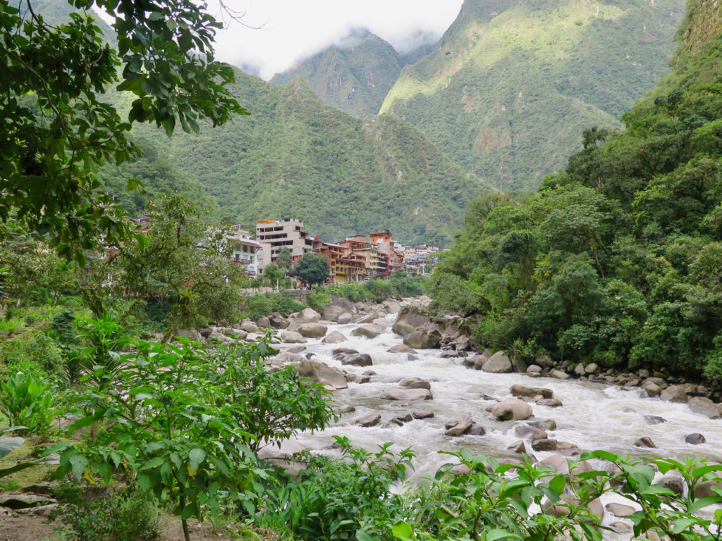 Ça y est, nous y sommes ! Voici Aguas Calientes, aussi connue sous le nom de Machu Picchu Pueblo. Finalement, nous aurons marché durant 2 h 30.