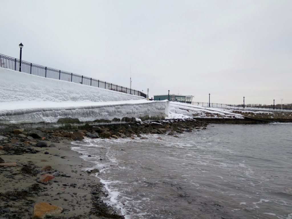 C’est la première fois que l’on voit un bord de mer enneigé et pris par les glaces.