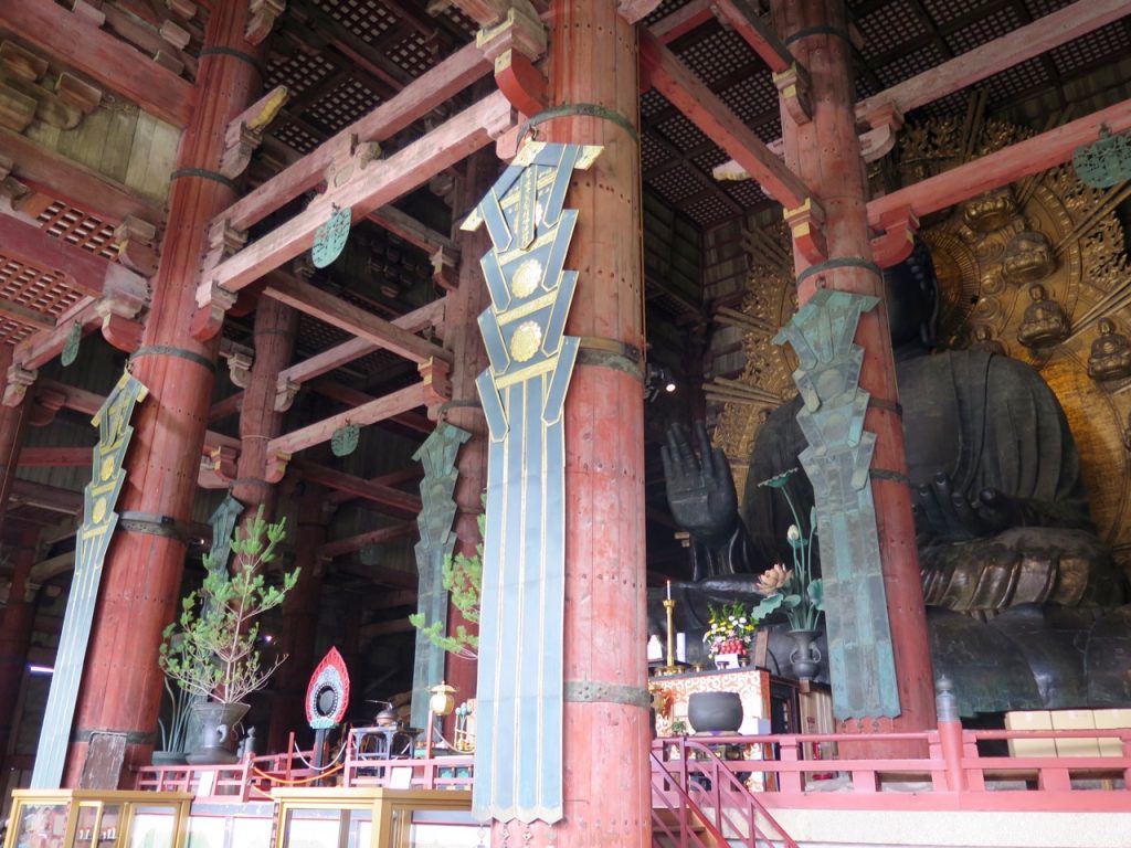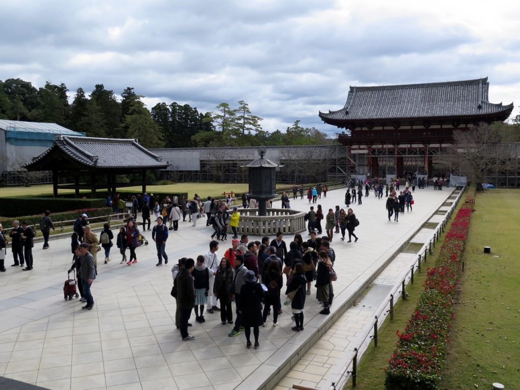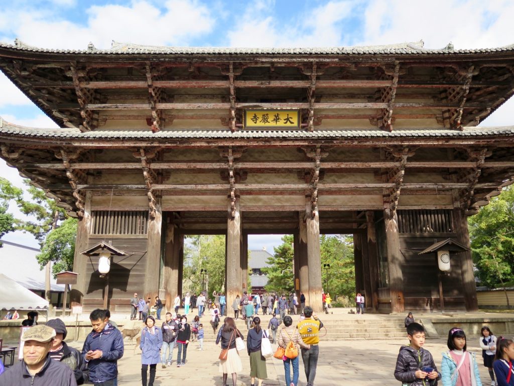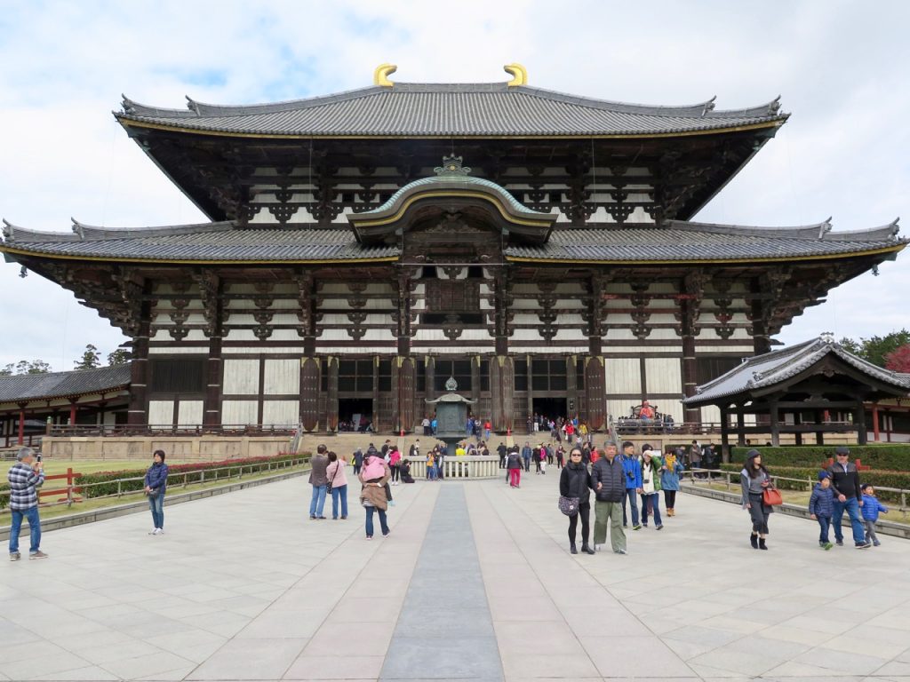 Après cette pause biscuits (pour les cerfs), nous arrivons au mythique Todai-ji, qui signifie littéralement « Grand temple de l’Est ». Sa construction date de l’an 752.