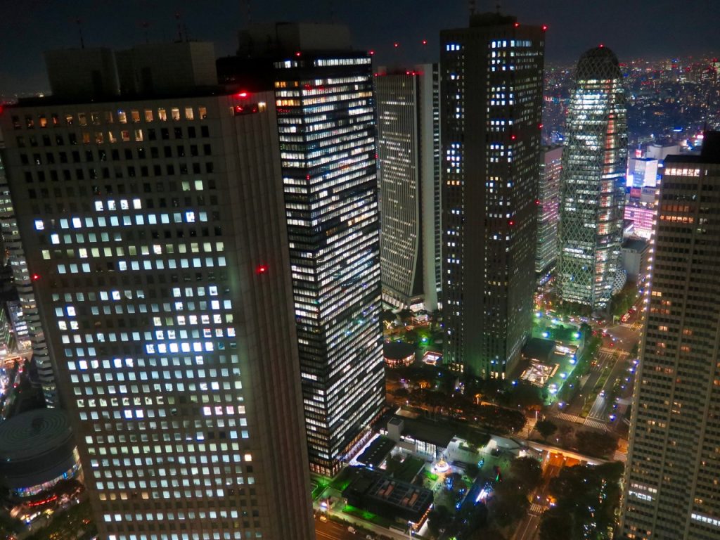 Après la visite du Koishikawa korakuen, nous retournons, comme prévu, à l’observatoire de la mairie de Tokyo, à Shinjuku, cette fois de nuit. Histoire d’en prendre plein les yeux.