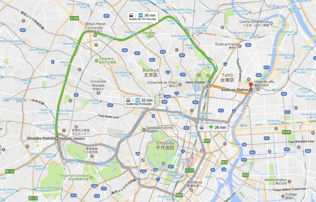 De retour à la gare, nous prenons la Yamanote, la ligne de train circulaire qui fait le tour de la ville, puis la ligne Asakusa jusqu’à la station du même nom. C’est toujours agréable de prendre le métro ou le train au Japon – sauf aux heures de pointe bien sûr.