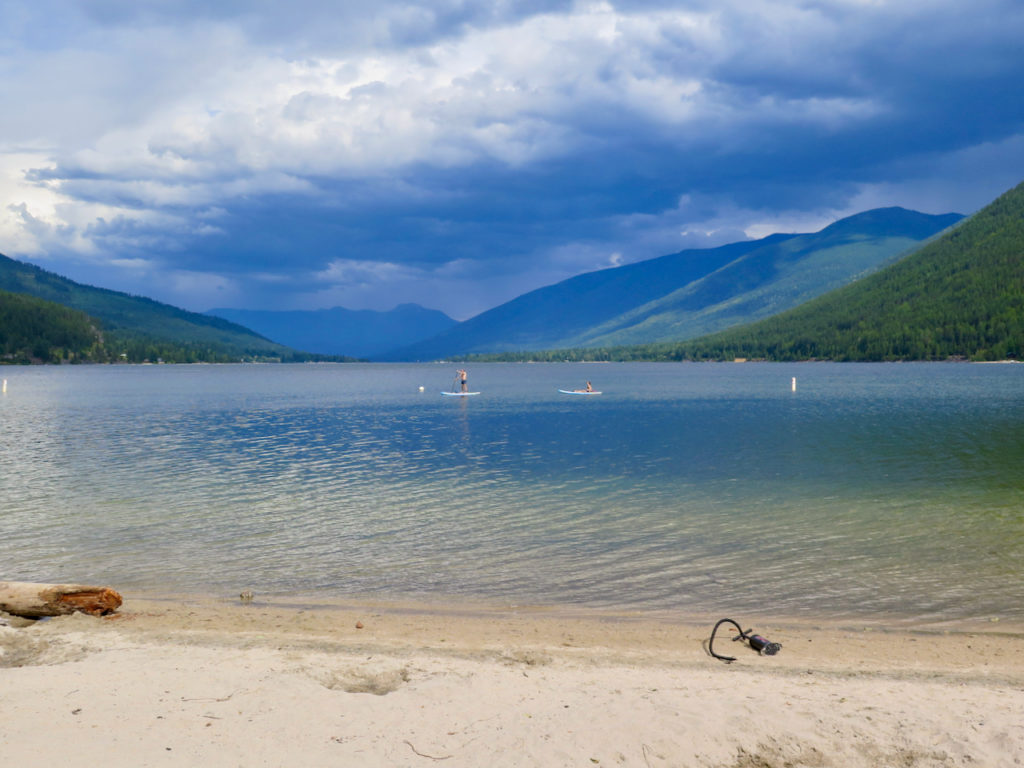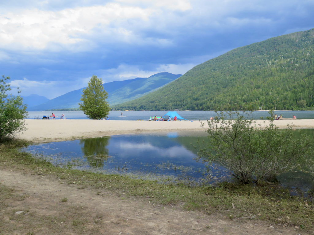 Voici deux photos de la plage du parc provincial Kokanee Creek, où se trouve notre camping. C’est très beau, mais c’était surtout infesté de moustiques. Tellement que nous ne sommes pas restés plus de 10 minutes !