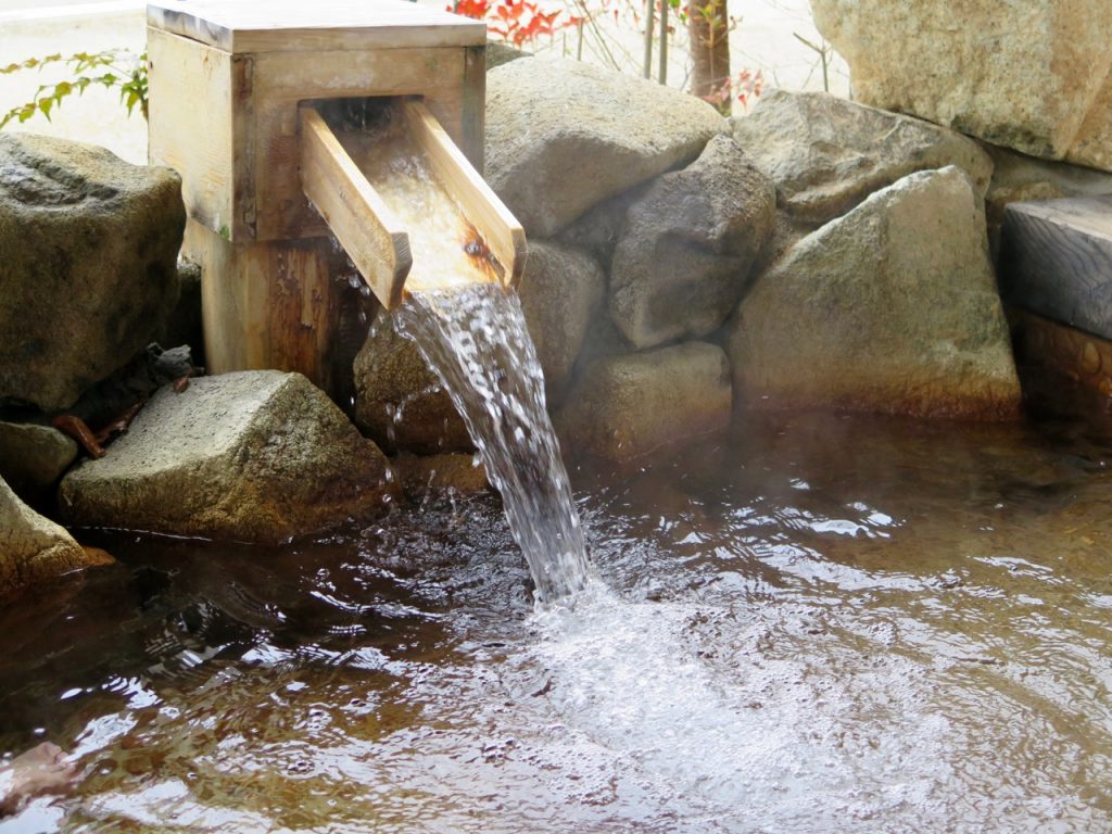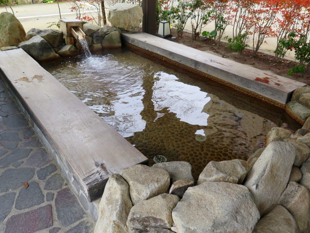 Avant de rejoindre la gare, nous nous arrêtons dans une source d’eau chaude pour faire tremper nos pieds fatigués. Ça fait un bien fou ! On y reste une bonne demi-heure…