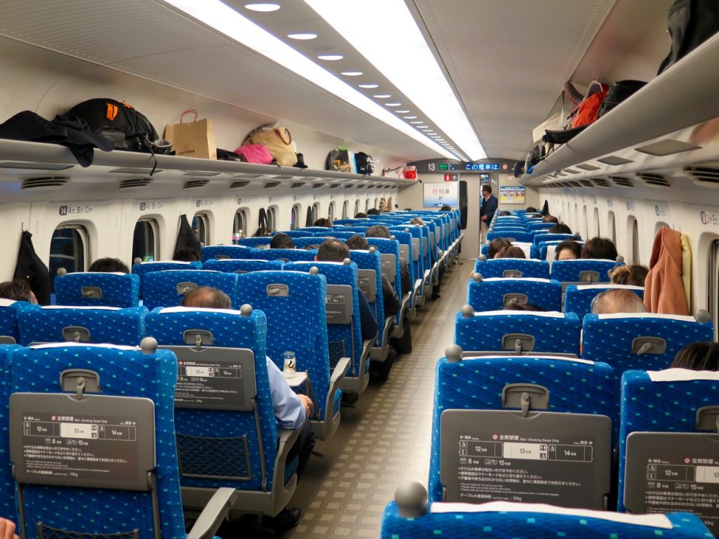 Finalement, nous décidons d’avancer notre départ pour Kyoto, initialement prévu autour de 17 h. Nous partons donc vers 14 h 30. Cette fois, nous prenons bien soin de réserver nos sièges dans le train ! Nous avons un train « classique » jusqu’à Nagoya puis le shinkansen jusqu’à Kyoto.