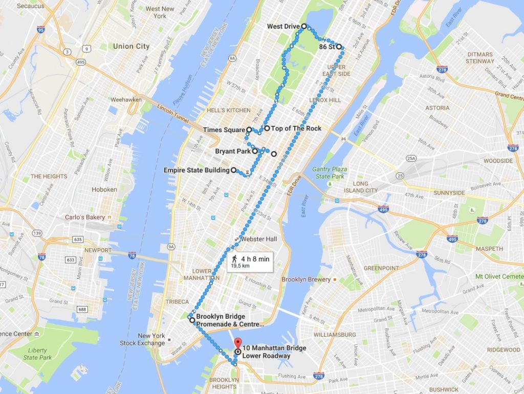 Hormis la section – un peu longue 😀 – entre la 86e Rue et le pont de Brooklyn, nous avons tout fait à pied !