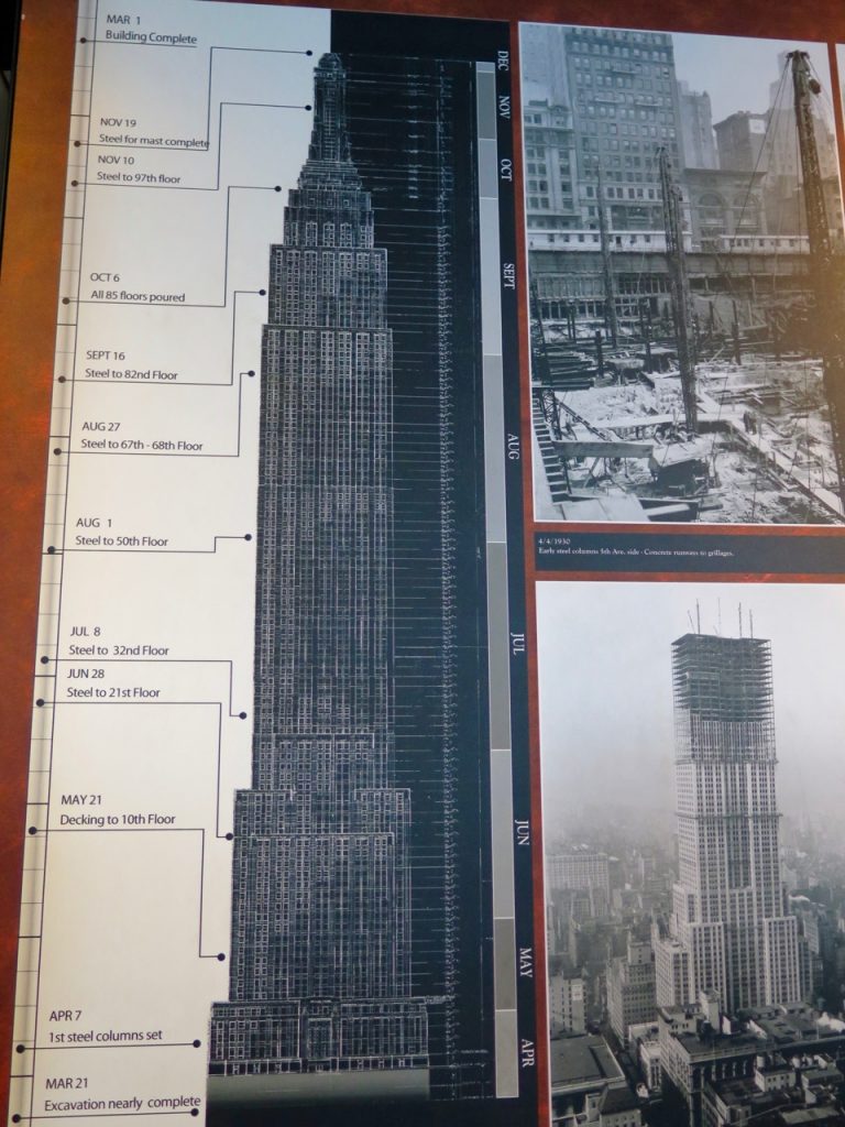 Nous arrivons au 86e étage en moins de deux. Il y a une belle exposition sur la construction de cet édifice mythique, achevé en 1931, après seulement 401 jours de travaux. Pour l’époque, ce fut une sacrée prouesse !