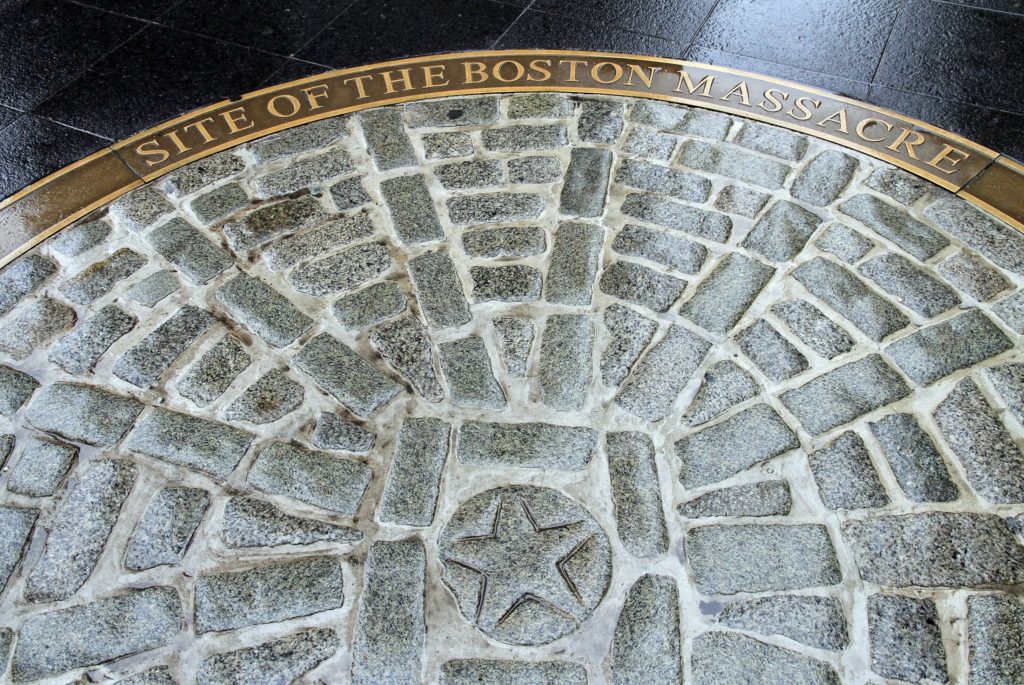 Le Massacre de Boston (10) eut lieu devant ce bâtiment ; une stèle est là pour le rappeler.