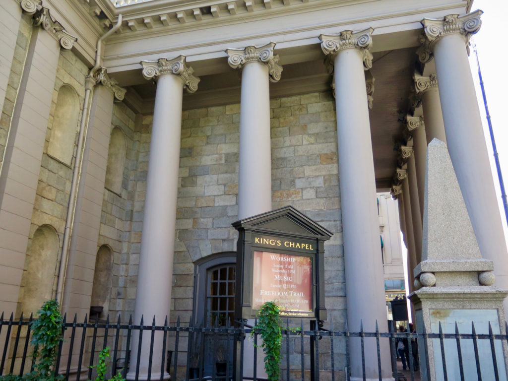 La visite se poursuit avec la King’s Chapel (5), une église unitairienne [ou unitarienne] qui date de 1749. Le bâtiment originel, en bois, fut construit en 1688.
