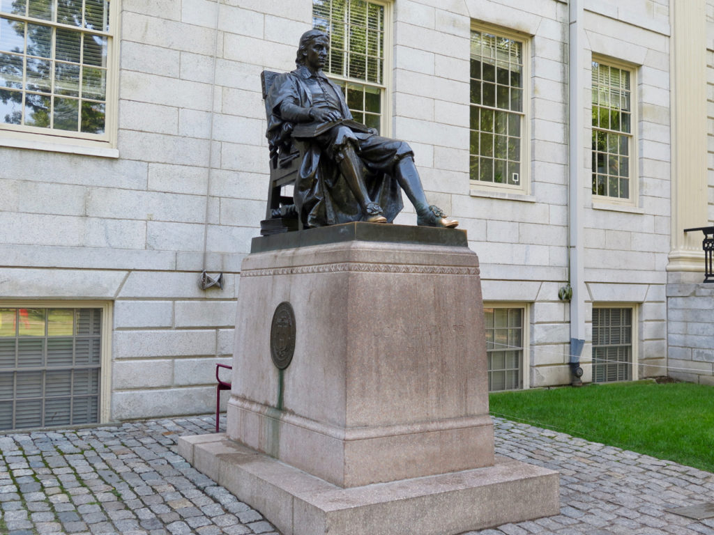 La statue de John Harvard, premier donateur bienfaiteur de l’université. Celle-ci sera rebaptisée en son honneur en 1639.