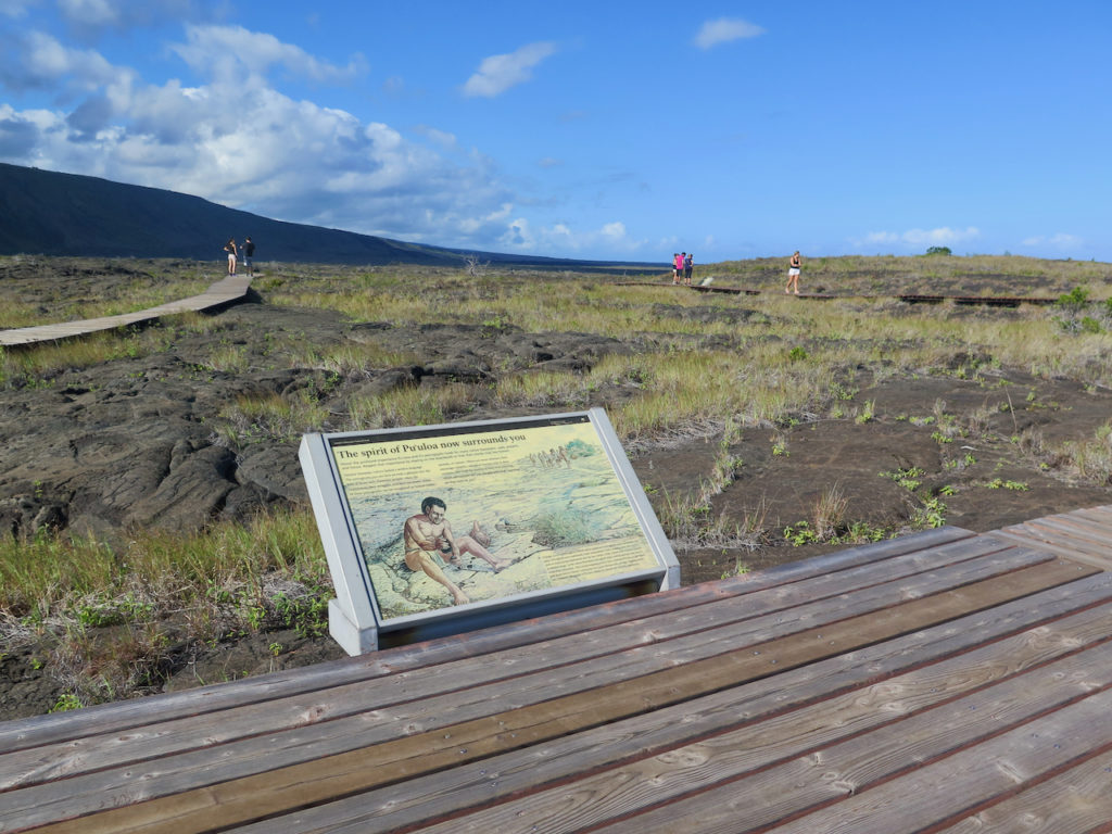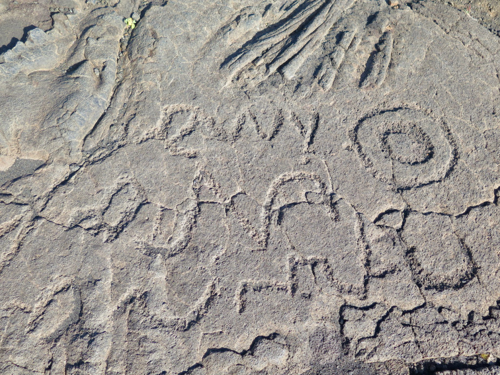 Ce sentier mène à des pétroglyphes (gravures sur pierre) réalisés par les premiers habitants de l’île Hawaï, il y a plusieurs siècles.