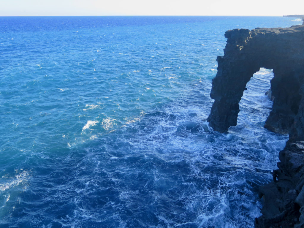 Arrivés au bout de la route, au niveau de la mer, la dernière curiosité géologique du jour est l’arche marine d’Holei.