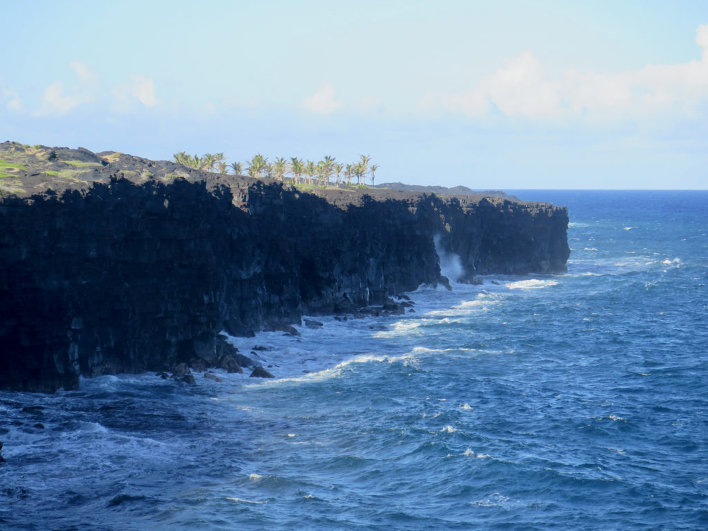 D’ailleurs, en sortant du parc, nous avons essayé de rejoindre la côte, plus à l’est, mais ce fut un échec. En effet, à la suite des récentes coulées de lave, nombre de routes sont fermées et, de fait, une bonne partie de la côte sud-est est inaccessible… Oui, c’est bien de la lave volcanique que vous voyez au fond !