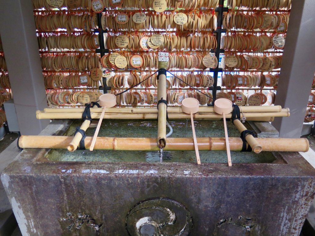 Les gens peuvent déposer une plaque de vœux sur les grands présentoirs dédiés à cet effet et que l’on trouve dans tous les sanctuaires.