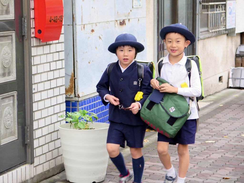 Juste avant de reprendre le métro, nous tombons sur ces deux écoliers en uniforme.