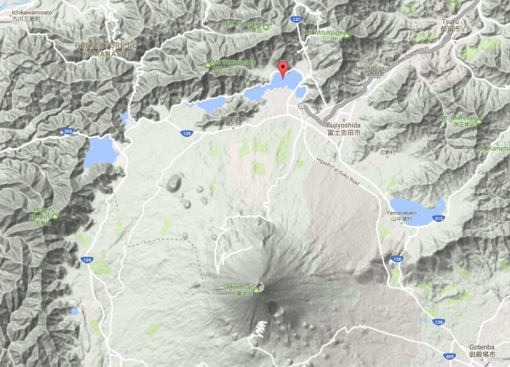 Une heure de plus (à 50 km/h de moyenne) et nous arrivons à Fujikawaguchiko. Il est midi.