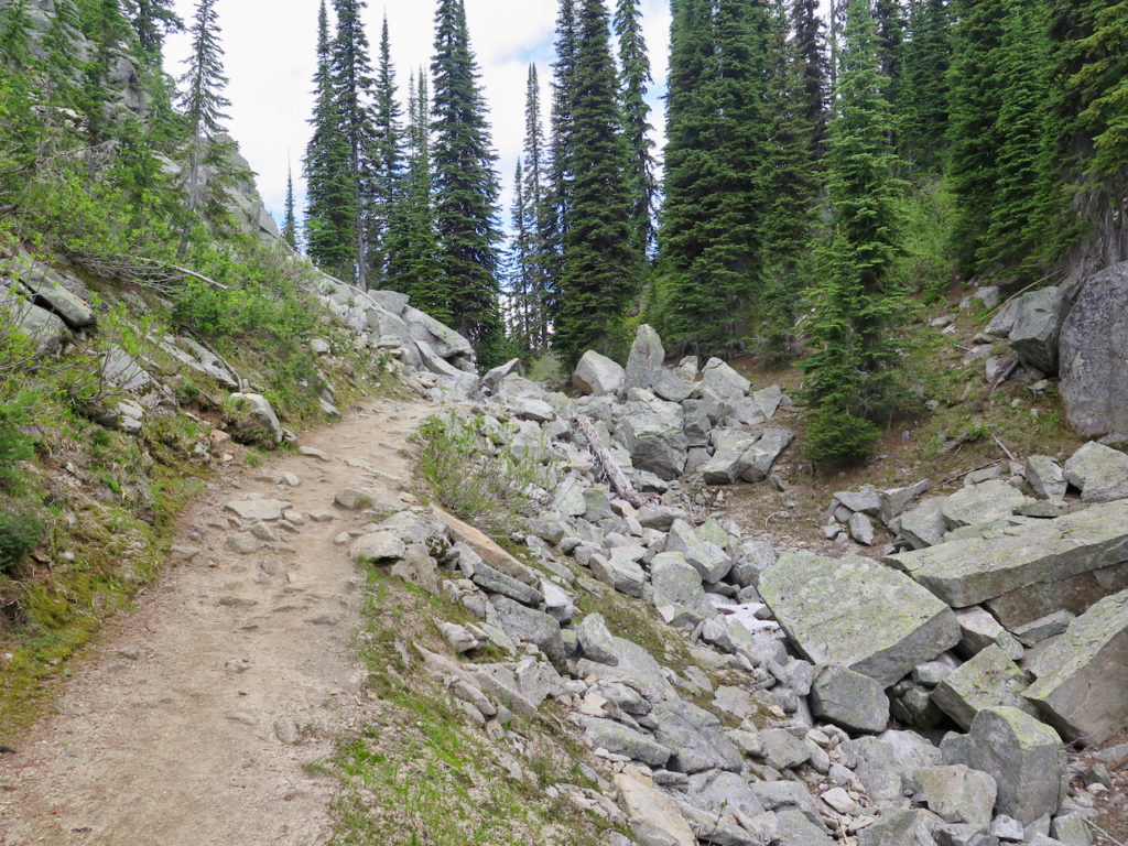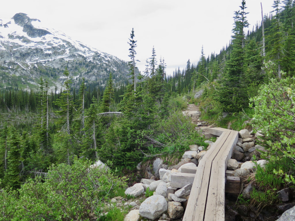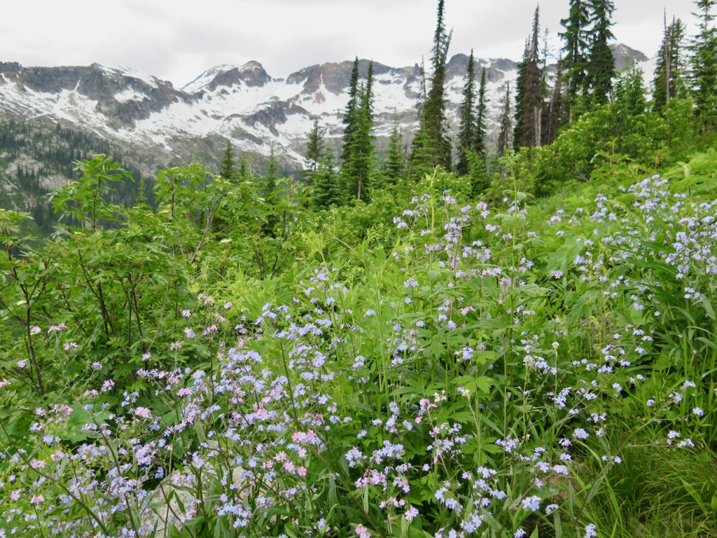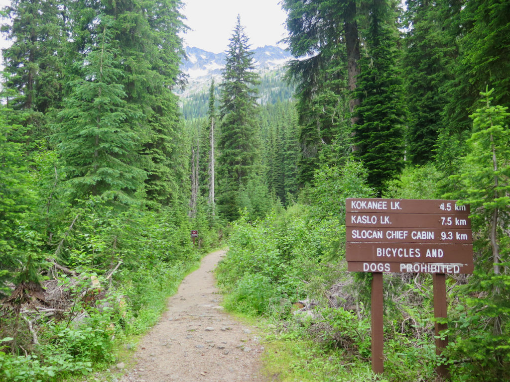 En ce 16 juillet, une belle randonnée en montagne est au programme, j’ai nommé Kokanee Lake Trail. Elle se situe dans le parc provincial du même nom, juste au nord du parc provincial Kokanee Creek, où se trouve notre camping [infesté de moustiques !].