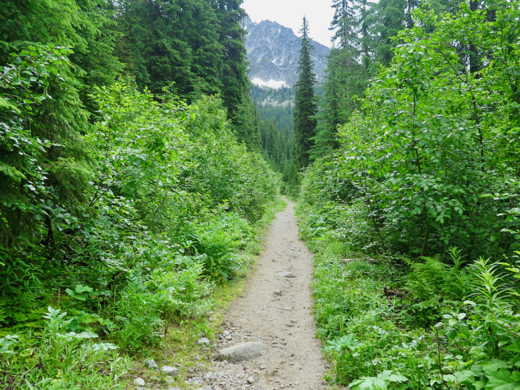 Après quelques minutes de marche, le sentier devient un peu plus pentu et plus aéré. Néanmoins, le ciel est couvert et la lumière n’est pas terrible. Dommage.