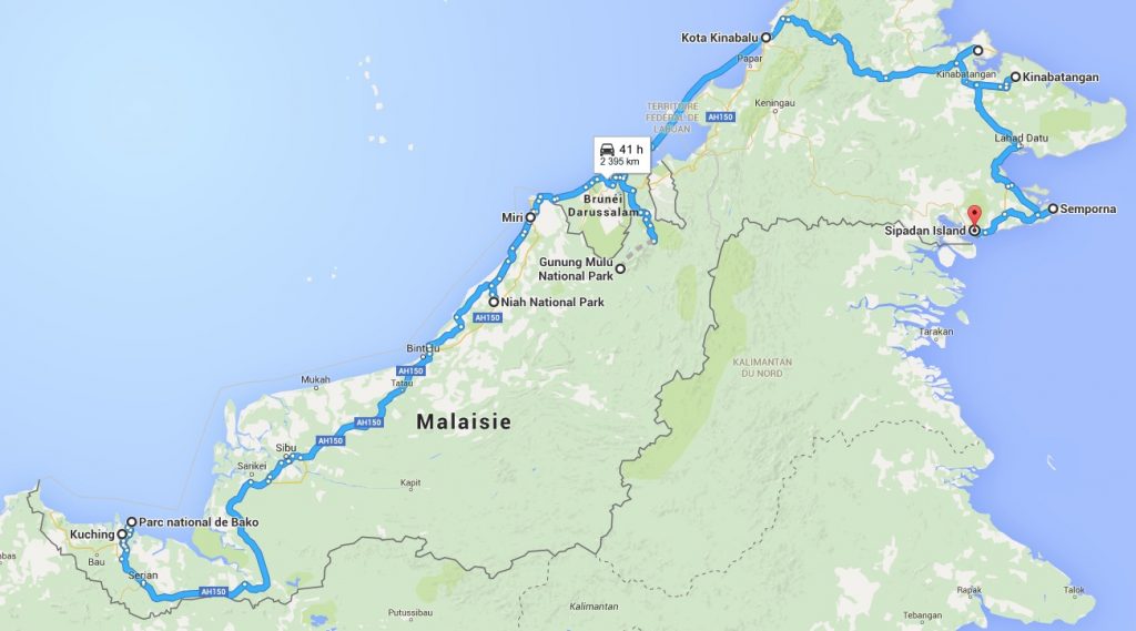 Pour notre troisième voyage en Malaisie (après 2005 et 2006), nous avons cette fois décidé d’aller sur la mythique île de Bornéo, la quatrième plus grande au monde. Celle-ci est partagée entre trois pays : la Malaisie au nord, l’Indonésie dans les deux tiers sud, et le petit sultanat du Brunei, au nord, enclavé entre les deux États malaisiens du Sarawak et du Sabah.
