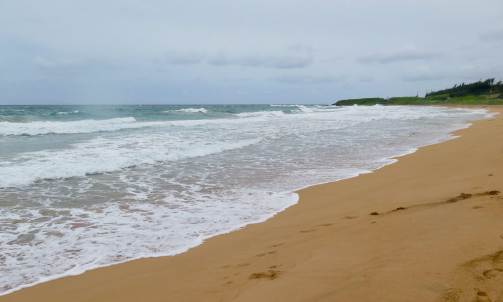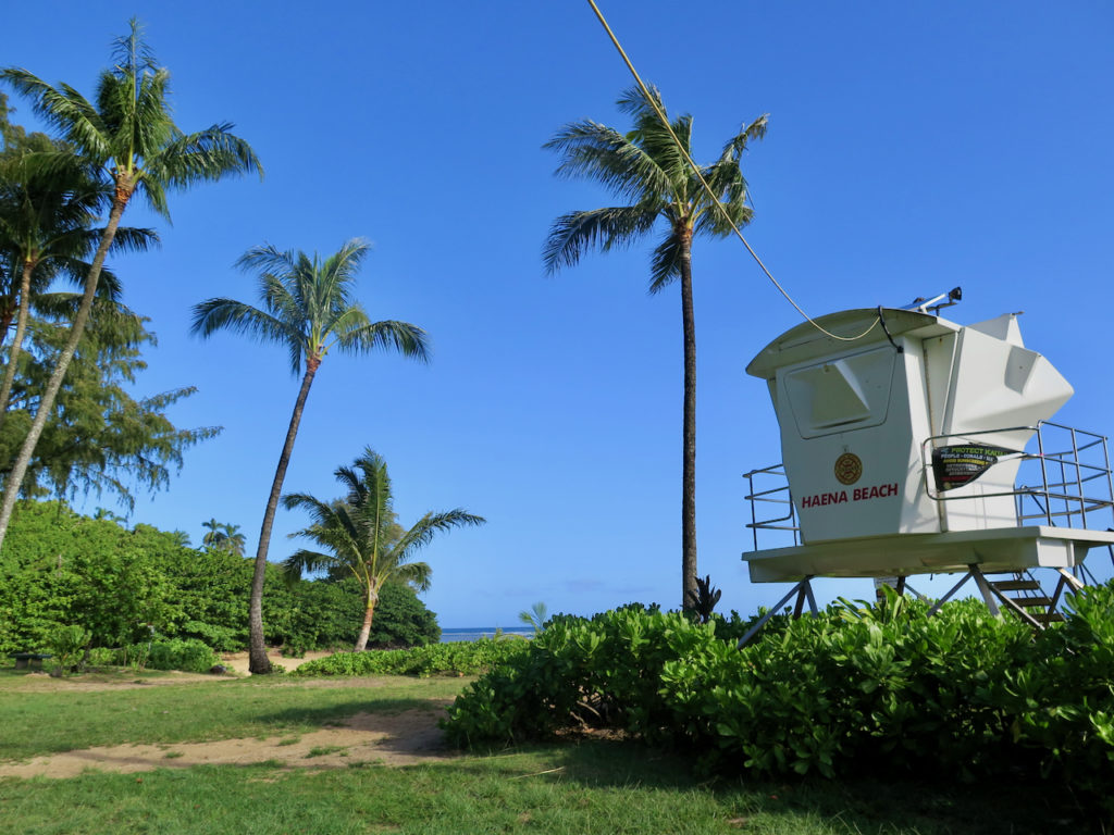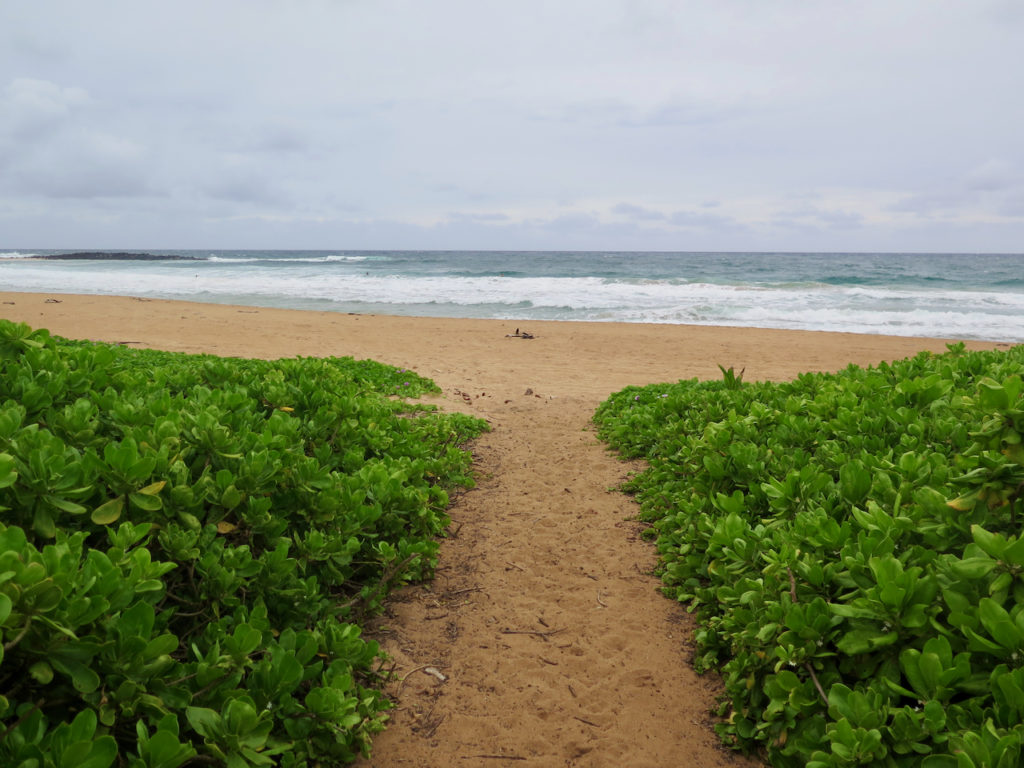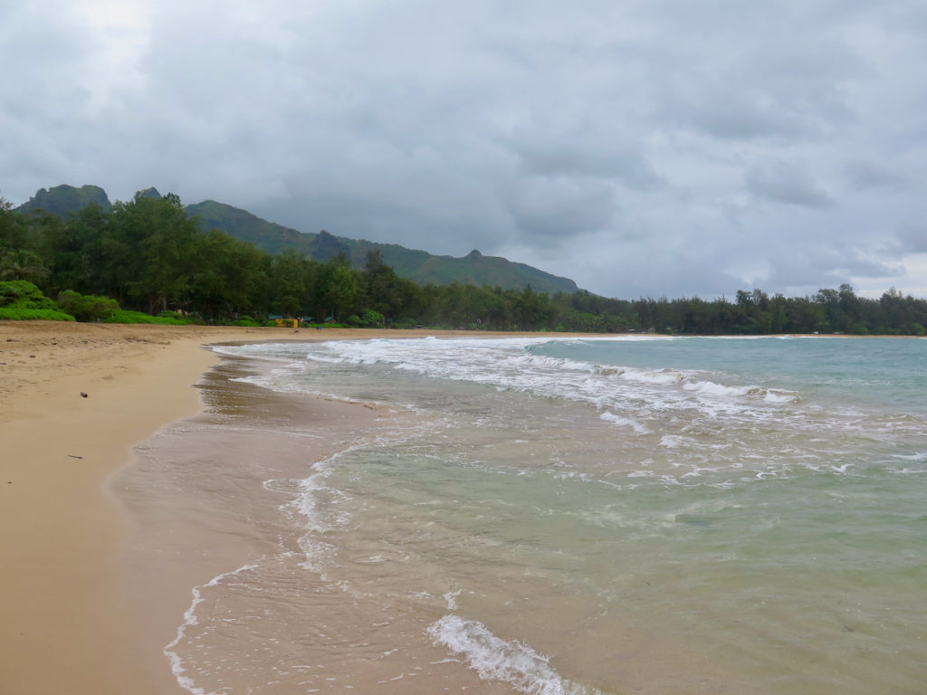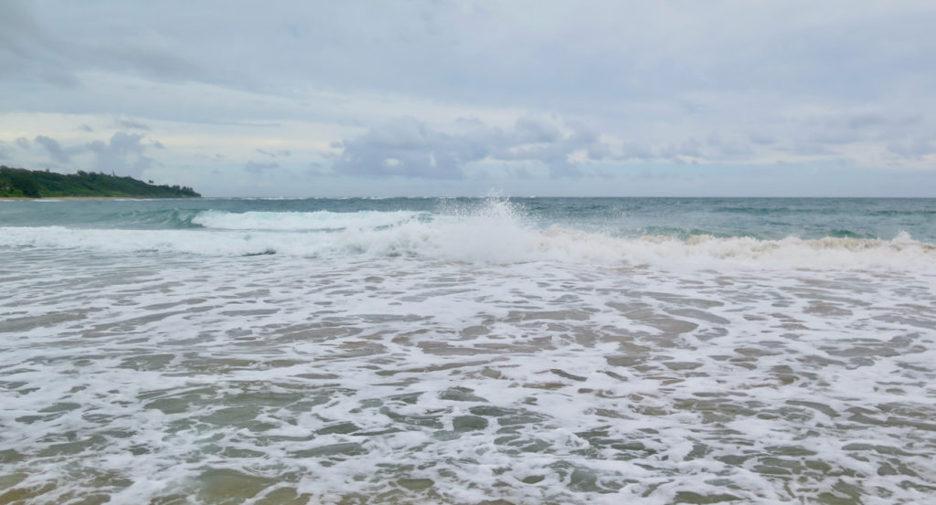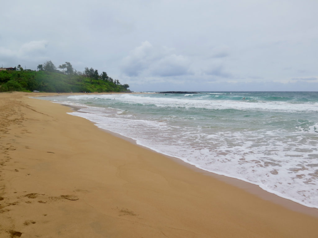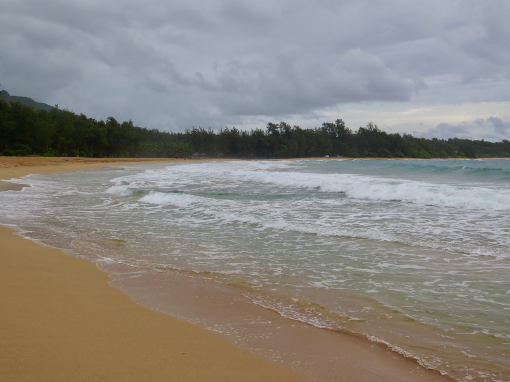Nous sommes désormais sur la côte nord-est de l’île, à Anahola Beach Park. Le temps est mitigé ; c’est désert.