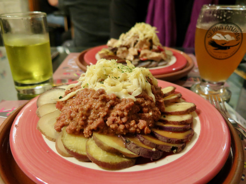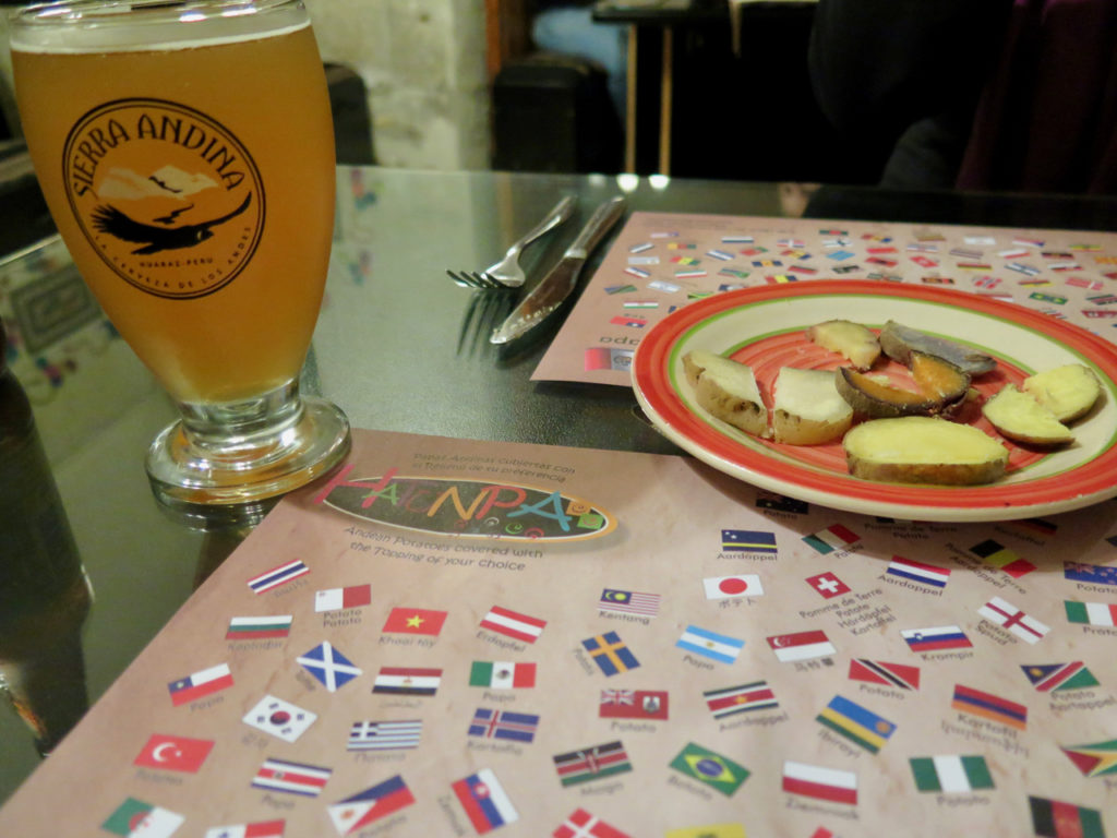 Les plats, à base de plusieurs de sortes de patates (évidemment !), de viande hachée et de fromage, s’avèreront excellents, tout comme la bière locale et le Inca Kola !