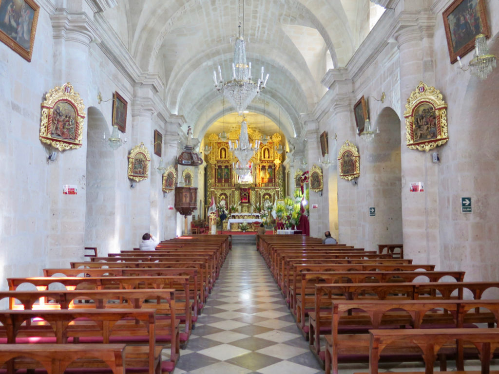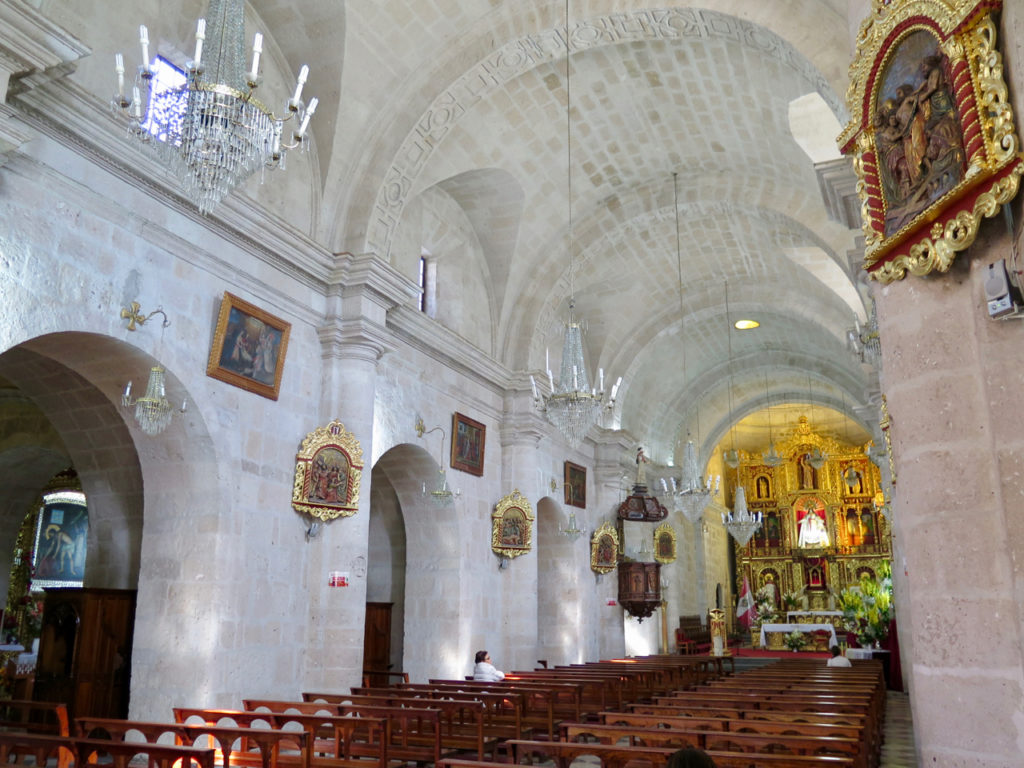 Les églises sont toujours très belles au Pérou. Personnellement, j’aime beaucoup ces énormes pierres de taille blanches.