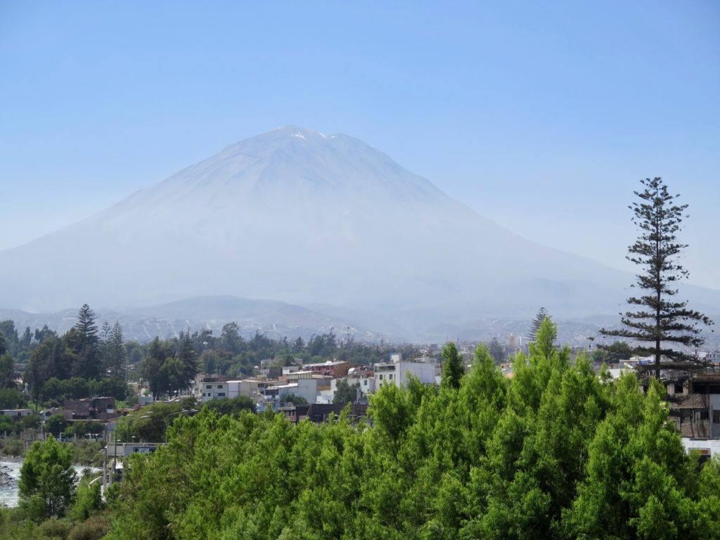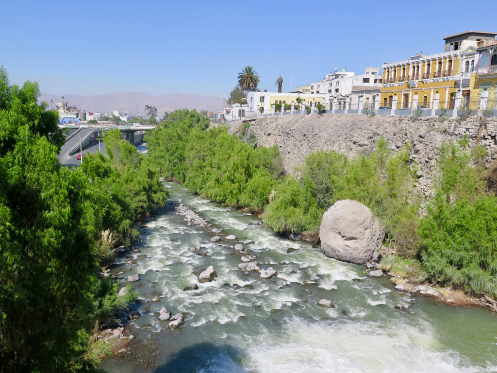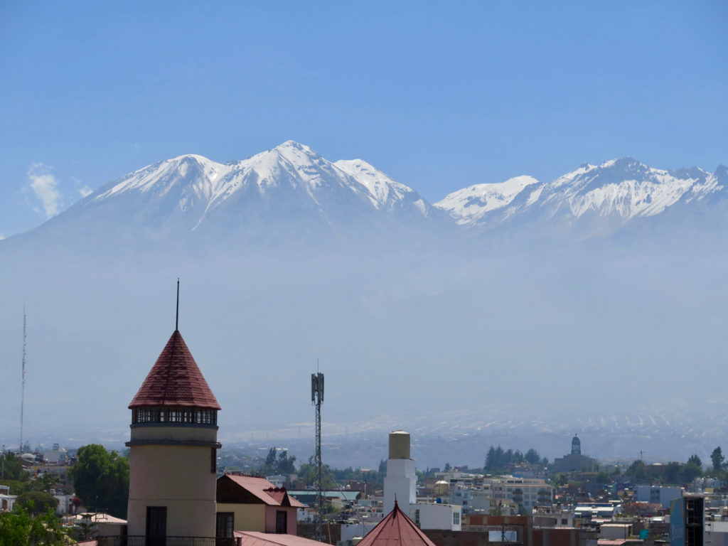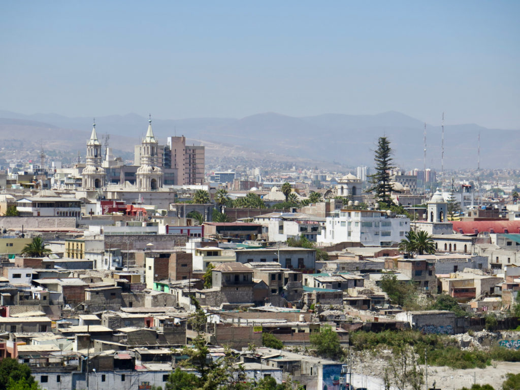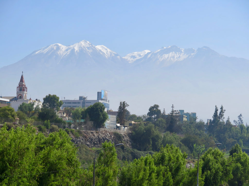 Très belles vues sur les montagnes, les faubourgs de la ville d’Arequipa, au loin, et le Rio Chili.