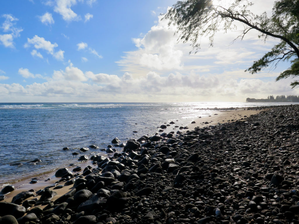 Arrivés au Haena State Park, nous passons cette fois par la route (et non par la plage, comme à l’aller) pour rejoindre Haena Beach. À 16 h 30, nous arrivons au parking, après quasiment 18 km de marche. Nos chaussures sont dans un sale état, et les jambes sont un peu lourdes. La suite de la journée sera consacrée au nettoyage de nos affaires et au repos… bien mérité ! 😉