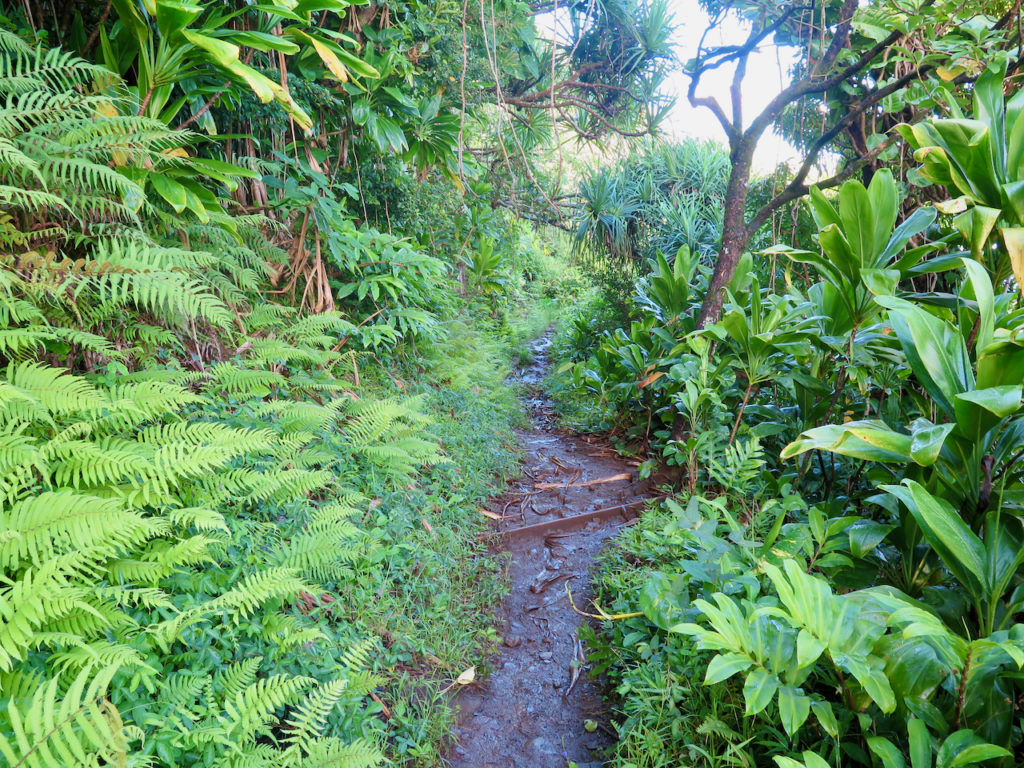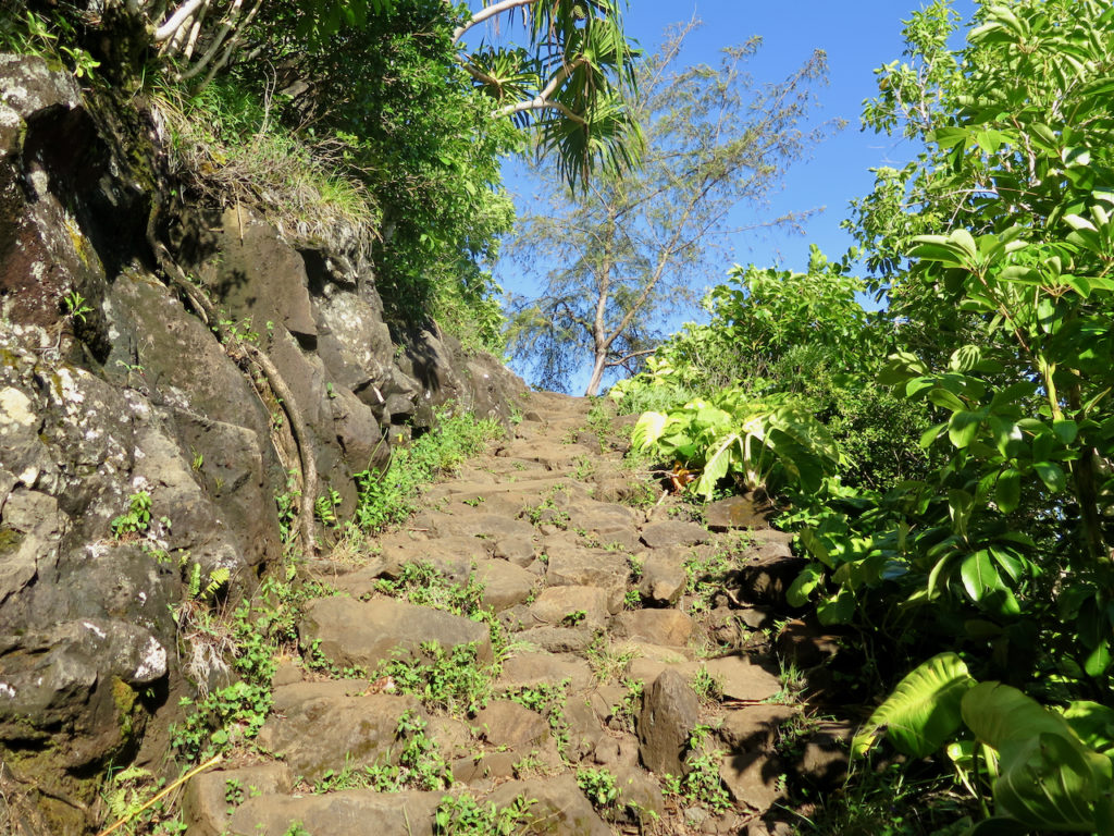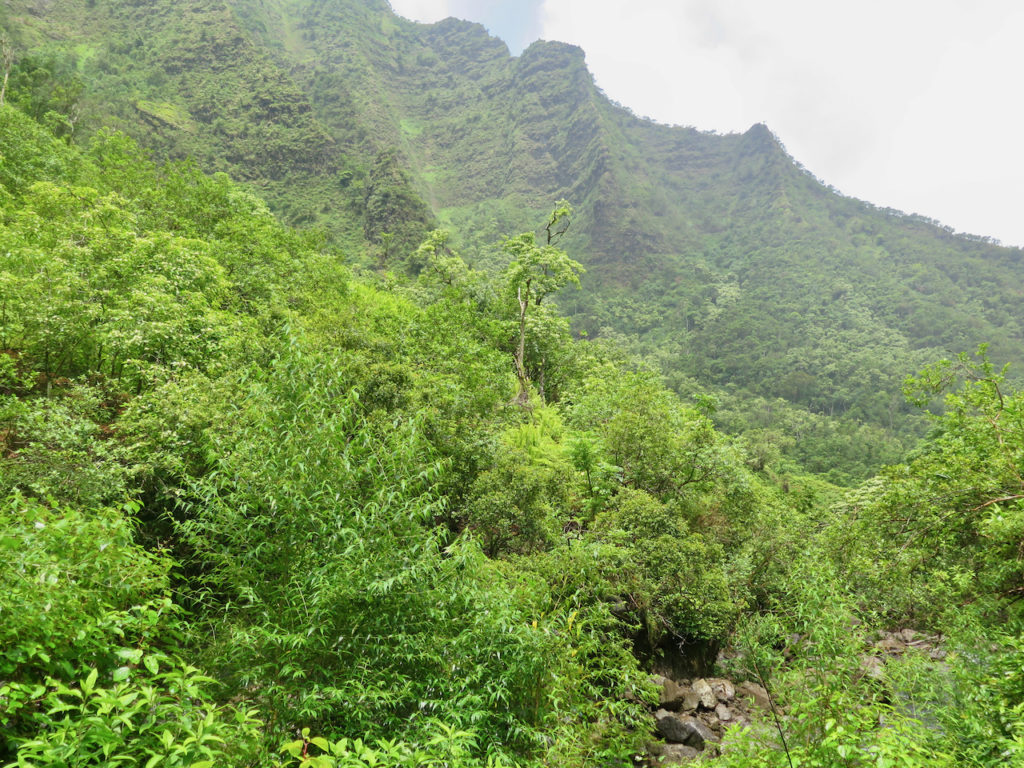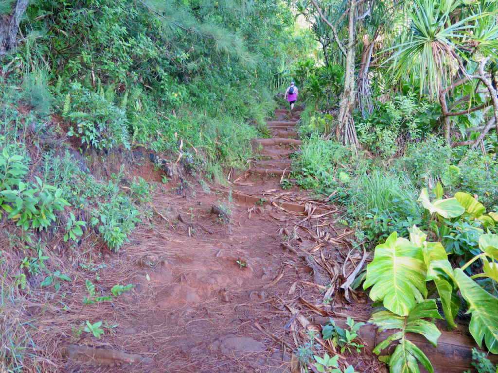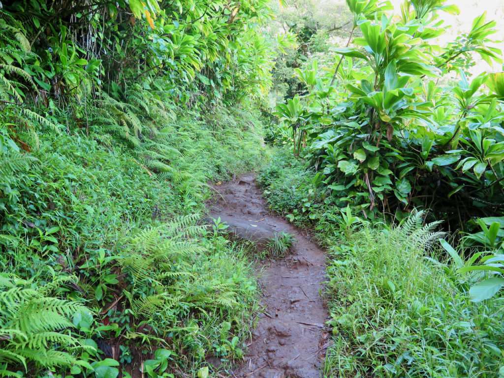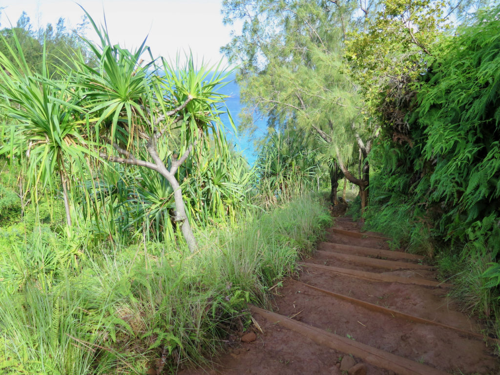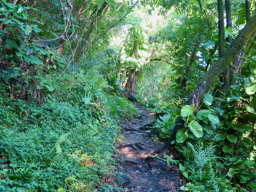 Nous amorçons notre descente vers Hanakāpī’ai Beach. Le terrain est à nouveau sec, car très au soleil cette fois. Il fait bien chaud.