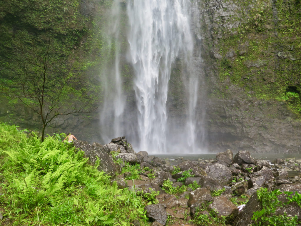 Après une heure et demie de marche, nous arrivons au pied des Hanakāpī’ai Falls à 12 h 25.