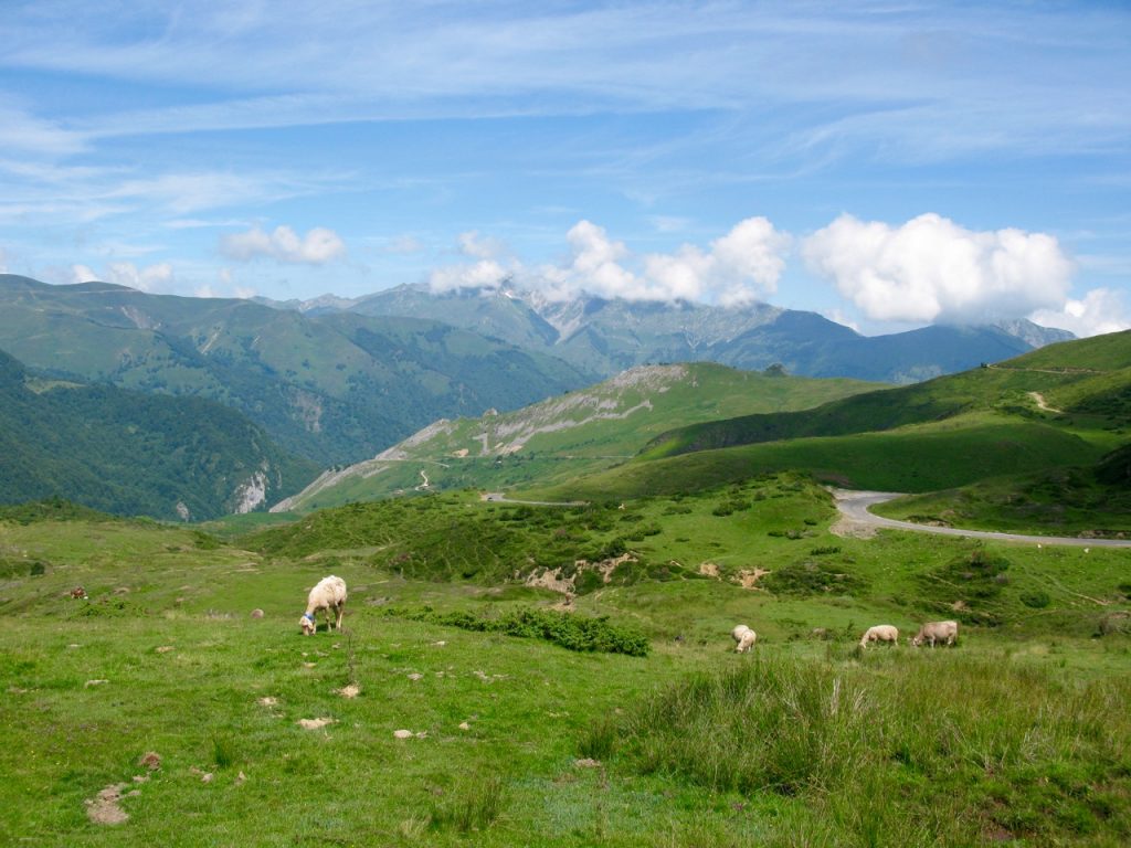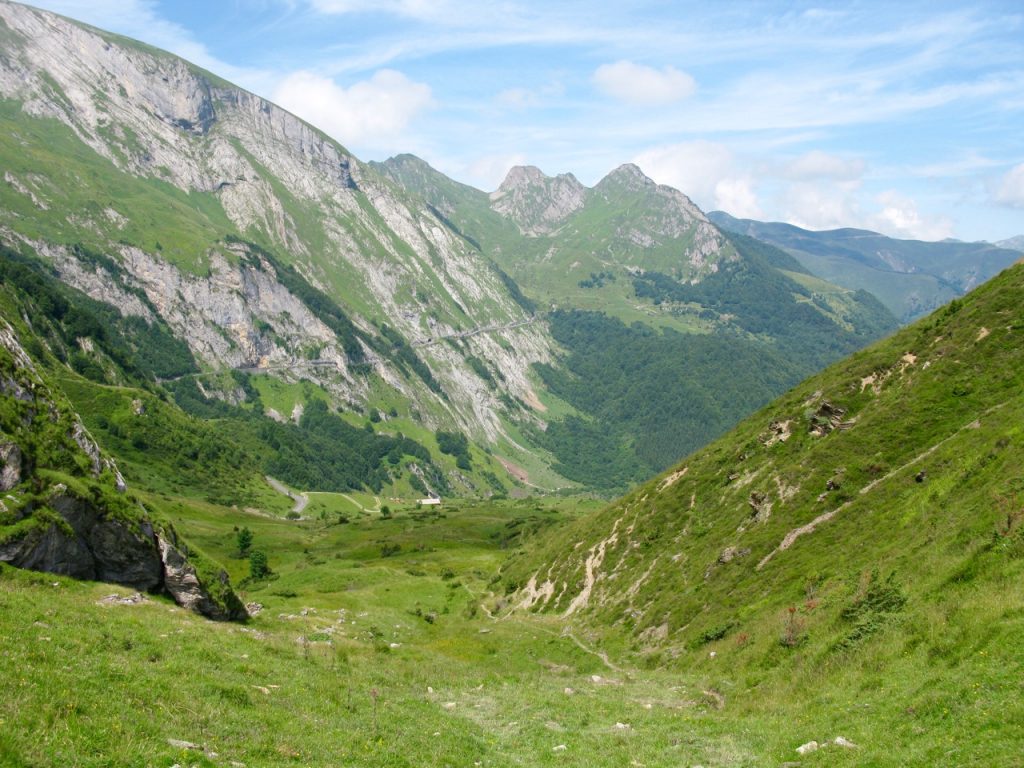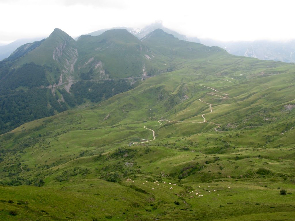 Sur cette photo, on voit la route – très étroite – qui rejoint le col d’Aubisque, à flanc de montagne. Avec ces cons de moutons qui traversent n’importe où ! 😀