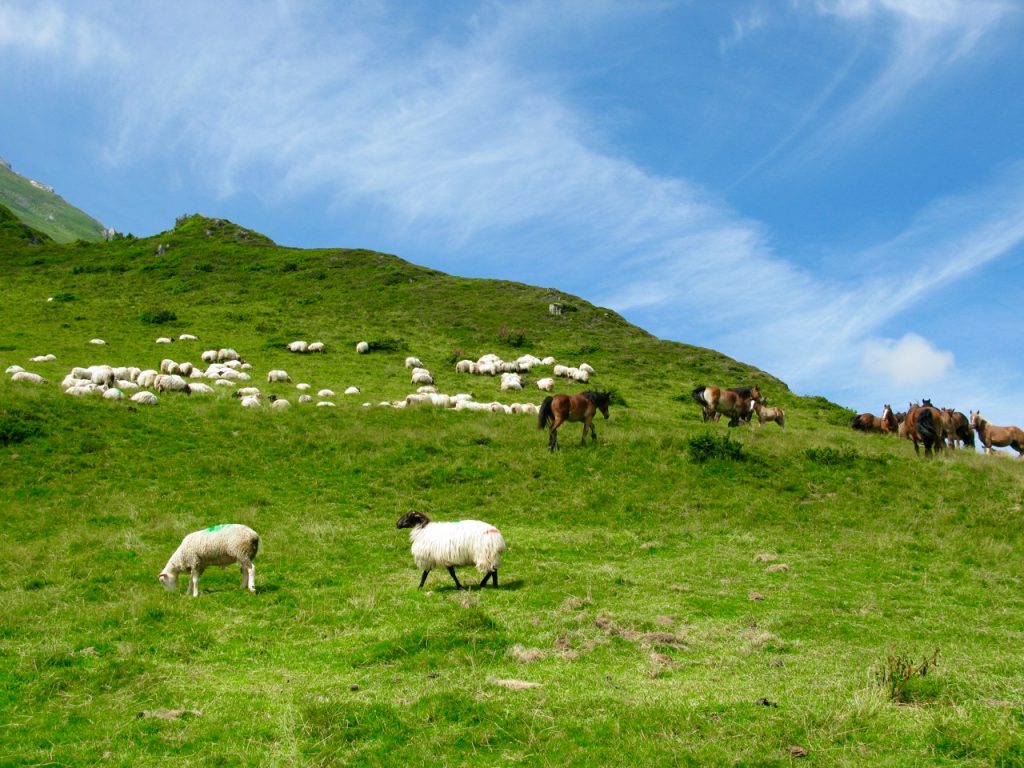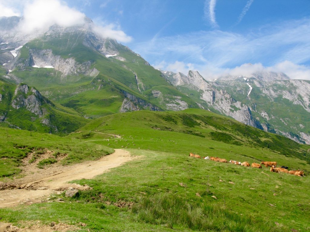 Ah que c’est beau ! Les hautes montagnes, ça me fait rêver. Et quand je vois en plus les vaches et les moutons, alors là c’est le nirvana 🙂