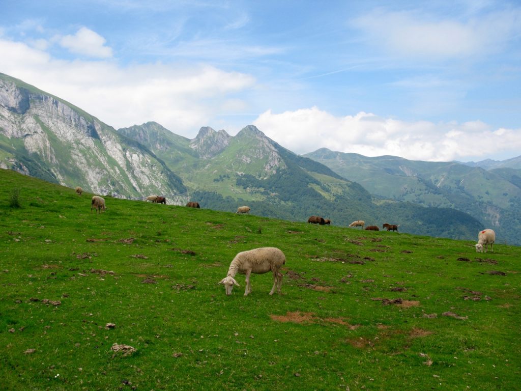 Alors eux – les deux moutons qui arrivent face à l’objectif de mon appareil photo -, eh bien ils ont voulu bouffer mon sandwich ! J’ai dû partir en courant… véridique ! Bon, comme je suis sympa et que j’adore le fromage des Pyrénées, je leur en ai donné un petit bout… 😀