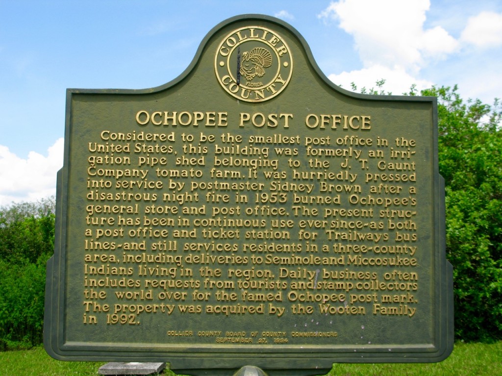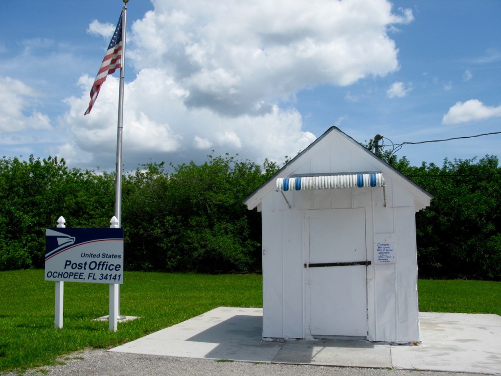 À mi-chemin, nous nous arrêtons brièvement à Ochopee afin d’immortaliser l’endroit, connu pour abriter le plus petit bureau de poste des États-Unis !