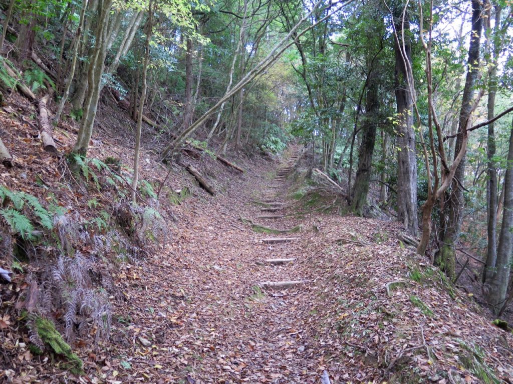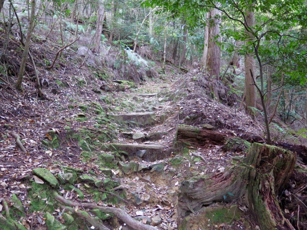 Le sentier est bien balisé et propre, mais ça grimpe ! Malgré ma tenue inadéquate, je le fais en courant.