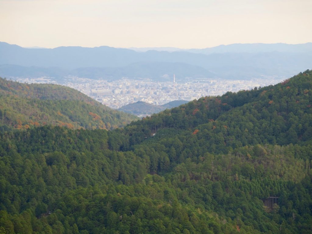 De là-haut, j’ai une belle vue sur Kyoto, au loin.