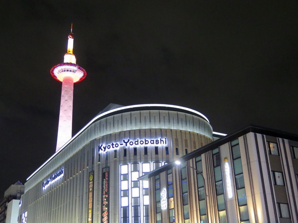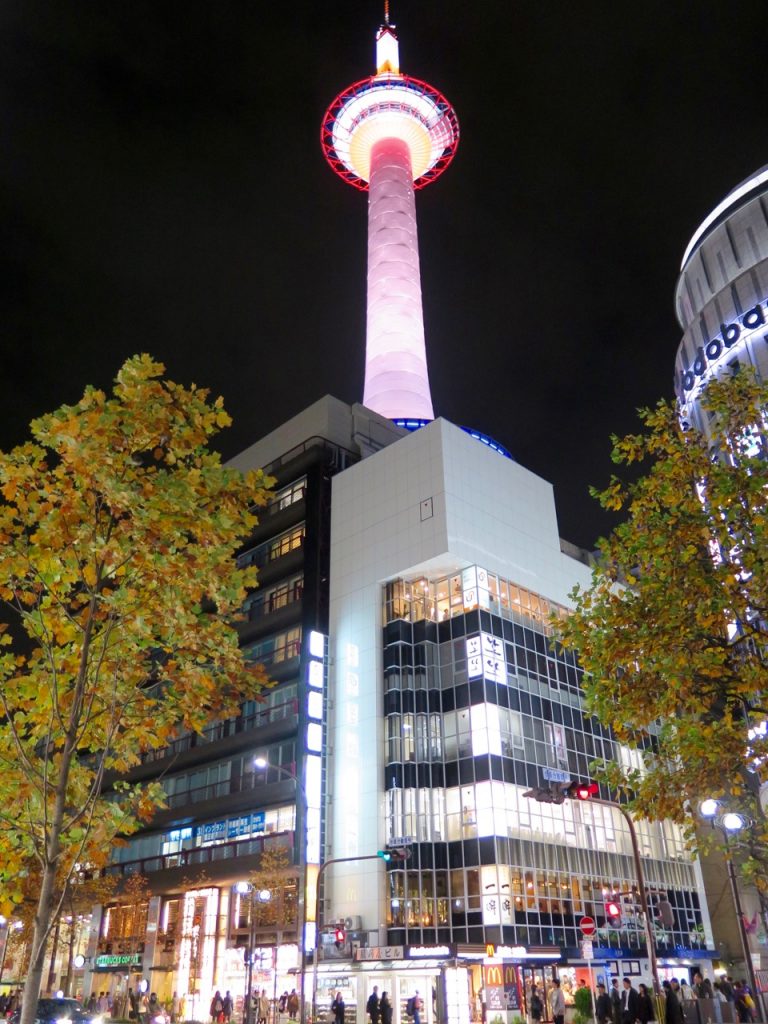 Après notre éreintante mais magnifique journée dans les collines de Takao, nous passons la soirée près de la gare de Kyoto – comme d’habitude ! La Kyoto Tower, telle un phare dans la nuit, sera notre étape suivante.