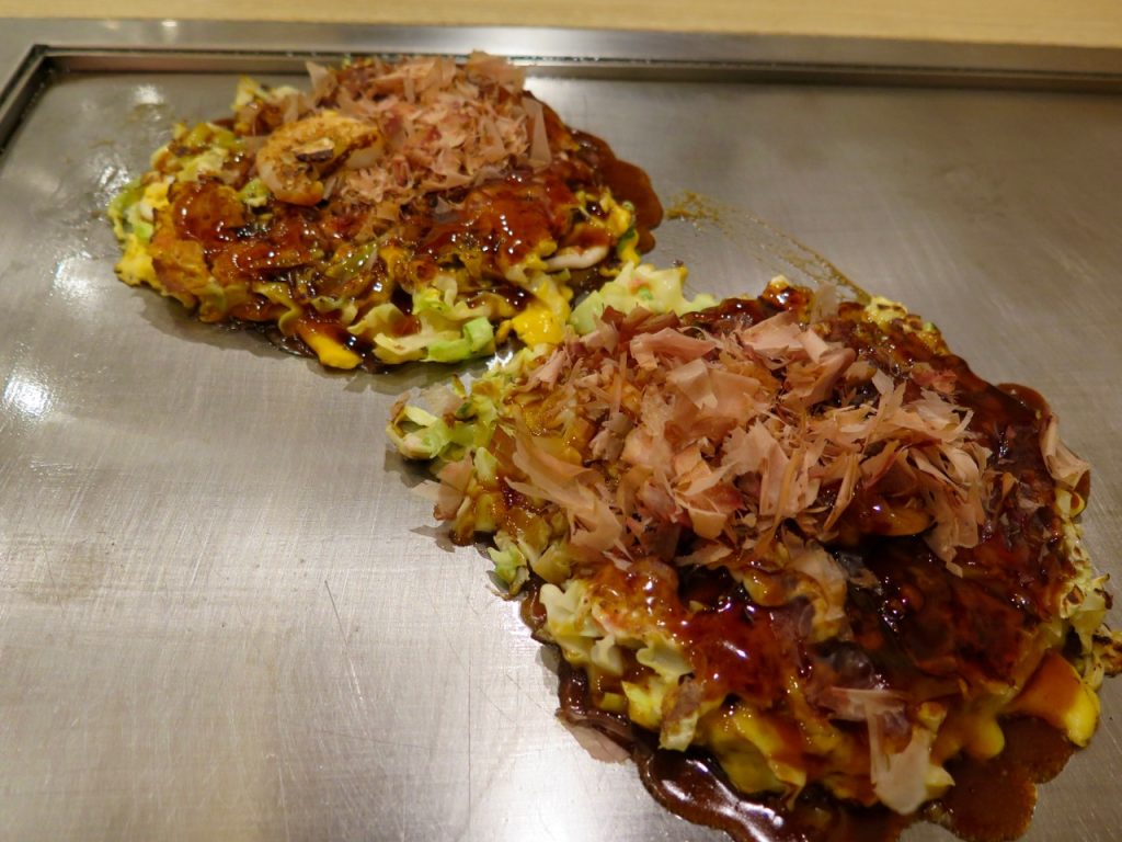 Nous terminons la soirée dans un petit restaurant du coin, en dégustant un okonomiyaki, plat japonais que nous avions découvert à Osaka.